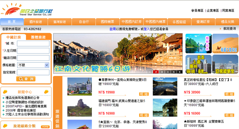 我司與臺灣明日之星旅行社簽約,開發(fā)旅游平臺。包括旅游線路、酒店訂房、機票預訂、各國簽證、禮品兌換等。