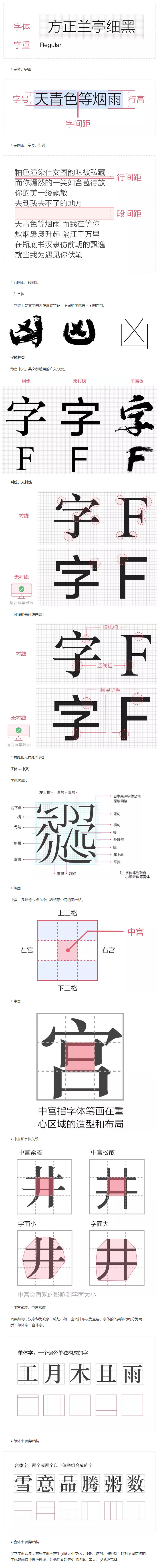「文字」是信息交流的工具,可讀性、易讀性至關(guān)重要。在網(wǎng)頁(yè)設(shè)計(jì)中文字使用需要考慮幾個(gè)要素:首先考慮字體,其次是字重、字號(hào)、行高、字間距、行間距、段間距等。