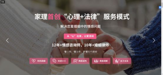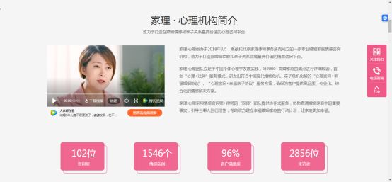 北京家理心理咨詢團(tuán)隊(duì)網(wǎng)站就用了溫暖柔和的粉紅來(lái)做整站的主色調(diào)▲